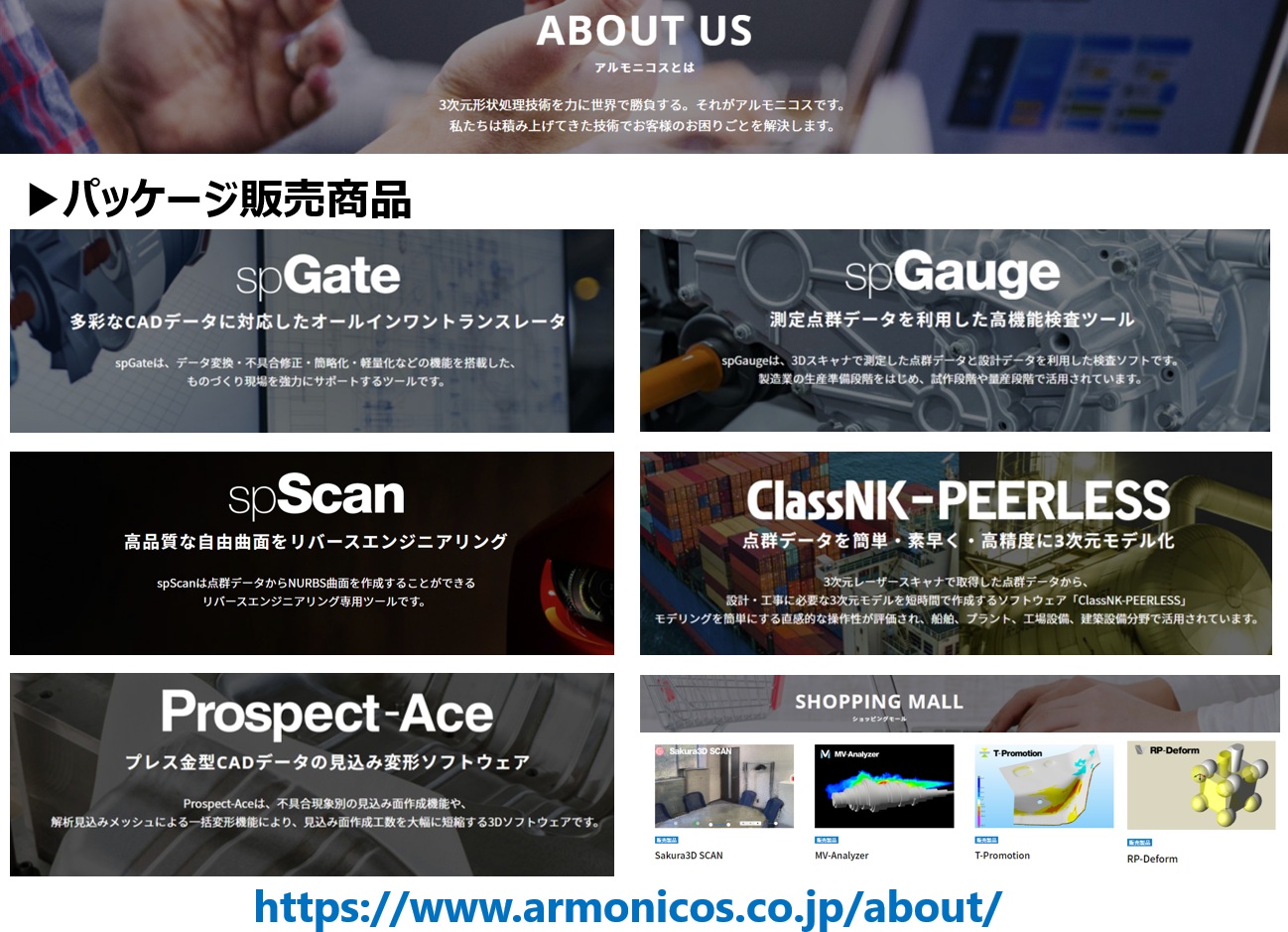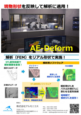 | PR message | Since its founding in 1984, Almonicos has been solving the various challenges faced by manufacturing sites by combining our customers’ expertise with our core competency in 3D shape processing. This accumulation of original knowledge is Almonicos’ greatest asset. |