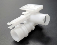 おねじめねじが有り仕上がりはJIS相当。複数のスライドはそれぞれが複雑にタッチ、クイキリ関係にあり、小径(Φ0.7~Φ1)ピンタッチが複数存在します。 ベリリウム銅も使用し金型温度コントロールを行っている精密金型部品です。水道圧を受けた状態で超長期でのシール性が要求される住宅設備関連心臓部品であり、要求品質を長い年月満たしながら高品質での製造を続ける為には成形管理能力に加え、高い金型管理能力が必須となる部品です。 |