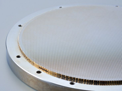 自社製の精密金型による押出成形で、世界最小クラスのセル密度:13,000の超微細セラミックスハニカムを実現しました。 アルミナ、ジルコニア、導電性セラミックス、ステンレスなど、様々な材料で製作可能です。 サイズ、ハニカム部壁厚・開口穴径など、金型により設計・デザイン変更も可能です。 |