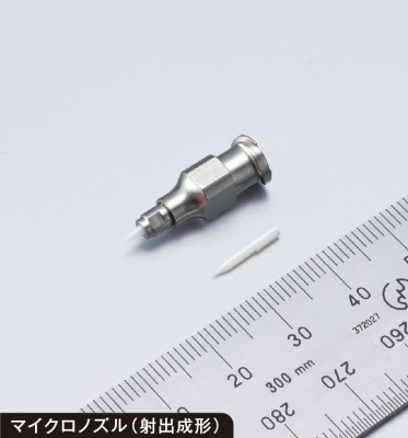 自社製の成形用材料と精密金型によるセラミックス射出成形技術で、機械加工では実現できない微細成形を可能にします。 電子部品吸着搬送用ノズルやディスペンサーノズル、インクジェットノズル等、マイクロノズル製作に特化した技術で、 最小穴径0.005mm(5μm)までの製作実績が有ります。 |