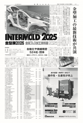 | PR文 | 金型しんぶんは業界唯一の専門紙です。 金型製作に求められる工作機械や切削工具、工作機器、測定機のほか、金型部品や表面処理(コーティング)、メンテナンス機器など金型に関わる様々な情報をお届けしています。 さらにモノづくりの変革期と呼ばれる時代、新たな取り組みに挑戦する金型メーカーなども紹介しています。 |