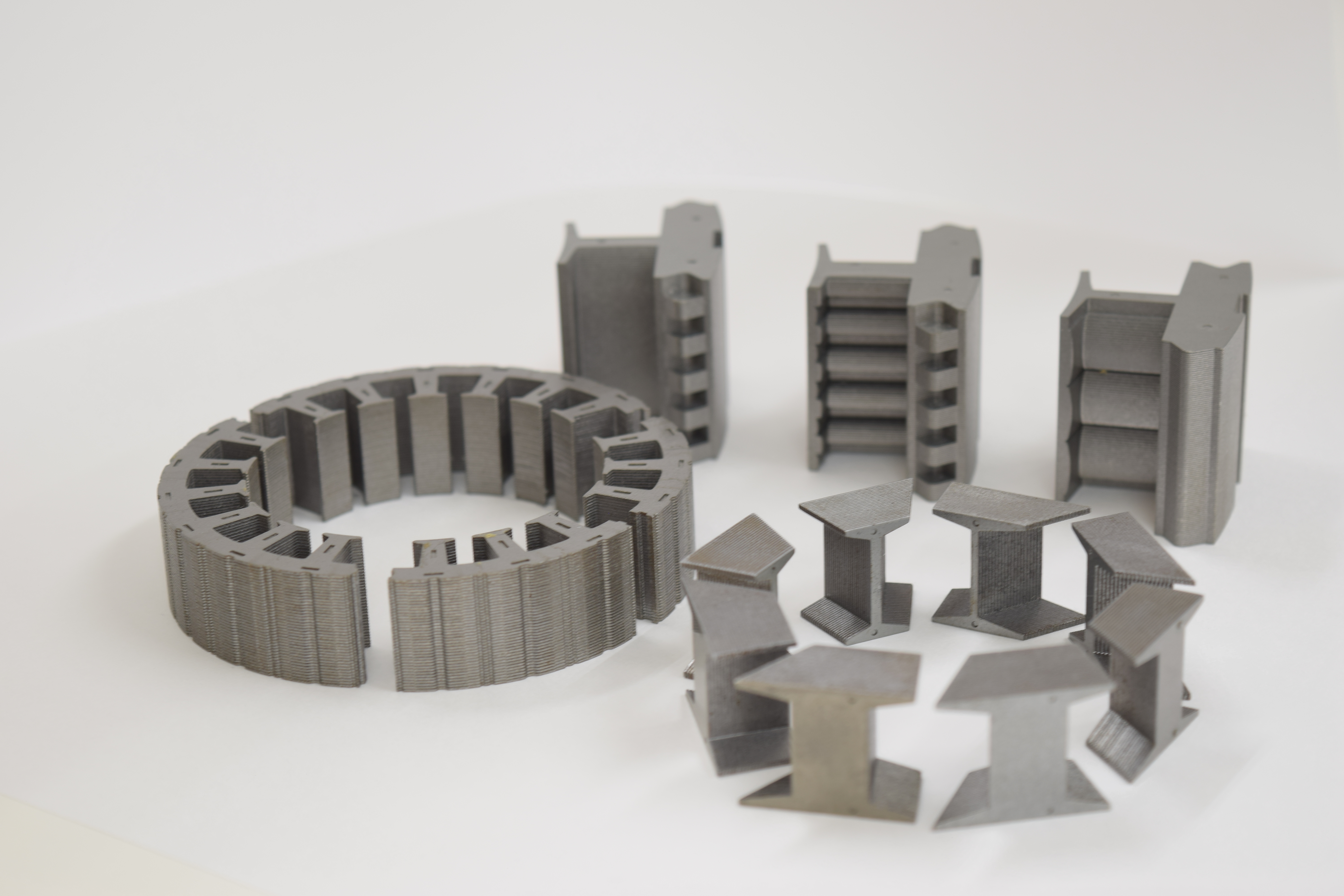 当社の可変打ち抜き(積層方向の打ち抜き形状変更)技術によって、順送打ち抜き金型で生産出来るようになりました。 本展示会では同技術を利用して製作した異形状オリジナルコアを多数展示致しますのでぜひご来場ください。 |