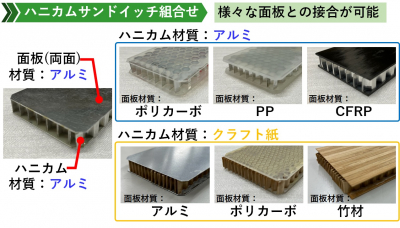 | 出展製品[3] | 【ハニカムサンドイッチ面板組合せ種類】 |