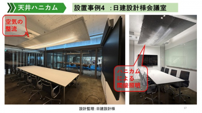 | 出展製品[8] | 【会議室の天井ハニカム】 |